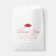 Modern graduation party favor bags featuring a red graduation cap at the top with "Thank You" displayed in an elegant calligraphy script. Personalize the graduation thank you favor bags with the graduate's name, graduation year, and a custom message.