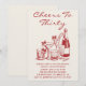 Elegant Red Cheers to Thirty Cocktail Birthday Invitation