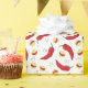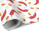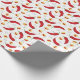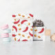 If you love red chile, this is the look for you. An elegant pattern of large red chile peppers mixed with smaller versions on yellow circles. Lots of green and red dots fill in open spaces on a white background. Also comes in a green chile pattern. matching products available.