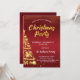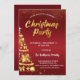Elegant Red Christmas Glitter Tree Gold Party Invitation