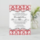 This custom wedding invitation is perfect for your classic, elegant wedding. An intricate damask background features a subtle heart pattern. Available in any custom colour, just contact us for product customisation, at no additional cost. Don't forget to customise the back with his and hers initials.