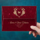 Simple, elegant, modern faux glitter red burgundy 5x7 envelope for winter holidays greeting cards or wedding invitations with gold foil inside, return address and adorable heart monogram at the top flap.