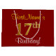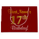 Elegant, Red, Faux Gold 17th Birthday; Custom Name Large Gift Bag