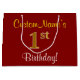 Elegant, Red, Faux Gold 1st Birthday + Custom Name Large Gift Bag