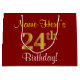 Elegant, Red, Faux Gold 24th Birthday; Custom Name Large Gift Bag