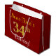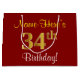Elegant, Red, Faux Gold 34th Birthday; Custom Name Large Gift Bag