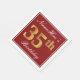This simple and elegant paper napkin design features a message like "NameHere’s 35th Birthday" (with the "35th" having a faux gold-like colouring) within a red-coloured square area featuring a simple border outline. The name is in a white-coloured script-like text, and can be personalised. Napkins like these could perhaps be used at a birthday party for somebody who is celebrating their thirty fifth birthday. [~Z0000138]