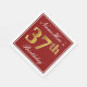 This simple and elegant paper napkin design features a message like "NameHere’s 37th Birthday" (with the "37th" having a faux gold-like colouring) within a red-coloured square area featuring a simple border outline. The name is in a white-coloured script-like text, and can be personalised. Napkins like these could perhaps be used at a birthday party for somebody who is celebrating their thirty seventh birthday. [~Z0000138]