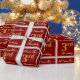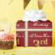 This simple and elegant wrapping paper design features a personalised message like "ANameHere’s 3rd Birthday" (with the "3rd" having a faux/imitation gold-like colouring look) within a red-coloured square area featuring a simple border outline. The name is in an elegant white-coloured script-like text, and can be customised. Wrapping paper like this could perhaps be used when wrapping birthday gifts for somebody who is celebrating their third birthday. [~Z0000218]