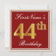 Elegant, Red, Faux Gold 44th Birthday; Custom Name Invitation