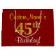 This simple, elegant birthday gift bag design features a personalised message like "CustomName’s 45th Birthday!" (with the "45th" having a faux/imitation gold-like colouring look) on a red coloured background. The name is in script-like, yellow-coloured text, and can be customised. A personalised birthday gift bag like this could perhaps be used when giving a present or gift to somebody who is celebrating their forty fifth birthday. [~Z0000253]