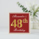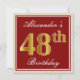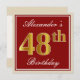 Elegant, Red, Faux Gold 48th Birthday; Custom Name Invitation