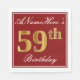 This simple and elegant paper napkin design features a message like "ANameHere’s 59th Birthday" (with the "59th" having a faux gold-like colouring) within a red-coloured square area featuring a simple border outline. The name is in a white-coloured script-like text, and can be customised. Napkins like these could perhaps be used at a birthday party for somebody who is celebrating their fifty ninth birthday. [~Z0000138]