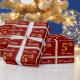 This simple and elegant wrapping paper design features a personalised message like "ANameHere’s 5th Birthday" (with the "5th" having a faux/imitation gold-like colouring look) within a red-coloured square area featuring a simple border outline. The name is in an elegant white-coloured script-like text, and can be customised. Wrapping paper like this could perhaps be used when wrapping birthday gifts for somebody who is celebrating their fifth birthday. [~Z0000218]