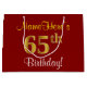 This simple, elegant birthday gift bag design features a personalised message like "NameHere’s 65th Birthday!" (with the "65th" having a faux/imitation gold-like colouring look) on a red coloured background. The name is in script-like, yellow-coloured text, and can be customised. A personalised birthday gift bag like this could perhaps be used when giving a present or gift to somebody who is celebrating their sixty fifth birthday. [~Z0000253]
