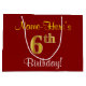 Elegant, Red, Faux Gold 6th Birthday + Custom Name Large Gift Bag