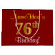 This simple, elegant birthday gift bag design features a personalised message like "NameHere’s 76th Birthday!" (with the "76th" having a faux/imitation gold-like colouring look) on a red coloured background. The name is in script-like, yellow-coloured text, and can be customised. A personalised birthday gift bag like this could perhaps be used when giving a present or gift to somebody who is celebrating their seventy sixth birthday. [~Z0000253]