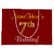 Elegant, Red, Faux Gold 7th Birthday + Custom Name Large Gift Bag