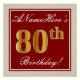 Elegant, Red, Faux Gold 80th Birthday; Custom Name Poster