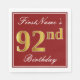 Elegant Red, Faux Gold 92nd Birthday + Custom Name Napkin
