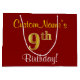 Elegant, Red, Faux Gold 9th Birthday + Custom Name Large Gift Bag