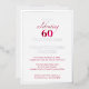 Customise this unique simple 60th wedding anniversary party invitation with a one-of-a-kind floral red rose typography. Personalise this pretty elegant anniversary invitation with the couple's names, event location, party date, and more editable text on the back as needed. I created this original real silver foil card for you. All of the simple contemporary typography can be edited. "Celebrating 60" is written in a pink red floral design taken from a photo of a rose flower. The front of the card is white with dark red pink script and selected silver foil script. The back is vibrant deep pink red. Simple beautiful and easily editable anniversary invitation template. See the collection for matching anniversary party decor and favours.