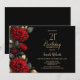 Elegant Red Floral Black 21st Birthday Party Invitation