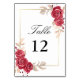 Elegant Red Floral Gold Frame Wedding Table Number