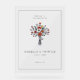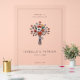 This acrylic sign features a simple, elegant design with a vertical layout and ample white space. The central illustration showcases a vibrant bouquet of red poppies, white daisies, and green foliage, tied together with a black ribbon. Below the bouquet, customisable placeholders for names, date, and location are presented in a clean serif font, adding a formal touch to the modern aesthetic. Perfect for weddings, this sign exudes warmth and anticipation, making it an ideal addition to any celebration.