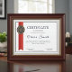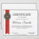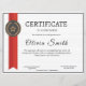 Designed to convey honor and longevity, this certificate features a sophisticated aesthetic with a vertical red award ribbon, a distinguished gold star seal with a laurel wreath border, and a subtle textured background that mimics high-quality security paper. The combination of navy blue serif headers and elegant black script for the recipient's name creates a look of formal importance.