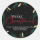 Elegant Red Gold Greenery on Black Merry Christmas Classic Round Sticker