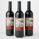 Elegant Red & Gold Merry Christmas Family Photo - Wine Label