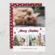 Modern red and gold photo Meowy Christmas card featuring three photos and paw prints on the front and a red background with gilded paws at the back. Easily personalise this elegant photo Christmas card with your photos, family name and the year.