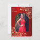 Elegant Red Gold Quinceanera Photo Thank You Card