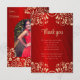 The quinceanera party is over and now it's time to send a word of thanks to your guests. This elegant red and gold thank you card is a perfect choice. You can add a photo on the reverse. Personalise with a message to your guests. They will love this elegant design and the gorgeous photo of you.