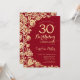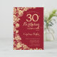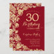 Red gold floral 30th birthday party invitation. Elegant design featuring roses, faux gold foil and typography script font. Trendy invite card perfect for a stylish female bday celebration. Can be customised to any age. Printed Zazzle invitations or instant download digital printable template.