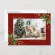 Elegant Red Gold Watercolor Holly Photo Holiday Postcard