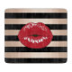 Modern and chick design featuring faux rose gold and black stripes, cute red lips.