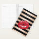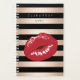 Modern and chick design featuring faux rose gold and black stripes, cute red lips.