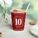 Celebrate the invaluable contributions of employees with these commemorative 10 years of service paper cups, which feature elegant block lettering on a red marble background. Customise with message, employee name, and years of service. Reverse shows identical design.