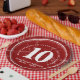 Celebrate the invaluable contributions of employees with these commemorative 10 years of service paper plates, which feature elegant block lettering on a deep red marble background. Customise with message, employee name, and years of service.