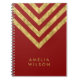 Elegant Red Name Faux Gold Chevron Pattern Notebook