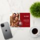 Experience the joy and elegance of the holiday season with our sophisticated family Christmas holiday cards. Immerse yourself in the rich red background which perfectly complements the red and gold foil Christmas ornament. Personalise this perfect piece with your family name, a heartwarming message, and a cherished family photo. Let our cards express your love and happiness this festive season.