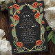 Capture timeless elegance with this Art Nouveau-inspired invitation! Featuring red peonies, leaves against a black background, this design sets the tone for a sophisticated celebration. Perfect for weddings, galas, and milestone events! Please note that the gold on this product is NOT real foil; it is printed flat.