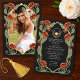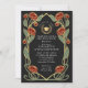 Capture timeless elegance with this Art Nouveau-inspired invitation! Featuring red peonies, leaves against a black background, this design sets the tone for a sophisticated celebration. Please note that the gold on this product is NOT real foil; it is printed flat.