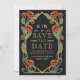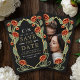 Capture timeless elegance with this Art Nouveau-inspired Save the Date! Featuring red peonies, leaves against a black background, this design sets the tone for a sophisticated celebration. The back features a place for your photo. Perfect for weddings, galas, and milestone events! Please note that the gold on this product is NOT real foil; it is printed flat.