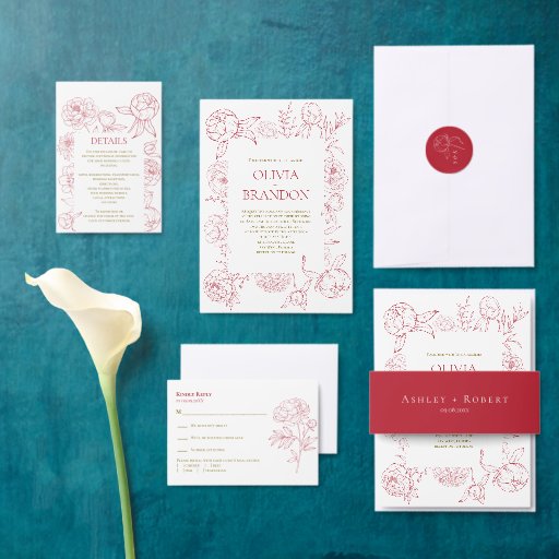 Elegant Red Peony Monogram Wedding Classic Round Sticker