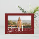 This modern and trendy graduation announcement features a red and white colour palette and a large photo of your graduate. An elegant and stylish "Grad" adorns the front. The back of the card features simple type allowing you to tell more about your graduate and their plan for the future. Or, you can change it to a graduation party invitation. You can find other versions of this design in my Zazzle store.