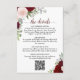 This beautiful wedding enclosure card is designed to give you extra space for whatever information your guests may need, including registry, reception, travel, accommodations, etc. as well as a customisable QR code directing your guests to your website for more information. The card features a rustic boho chic design with hand painted watercolor roses in shades of red, burgundy, and blush pink. The title is written in elegant script lettering and reads "the details." The back is a deep marbled burgundy red colour with a cluster of the same flowers along with eucalyptus leaves and garden greenery.