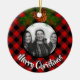 Elegant red plaid pinecone photo template ceramic tree decoration
